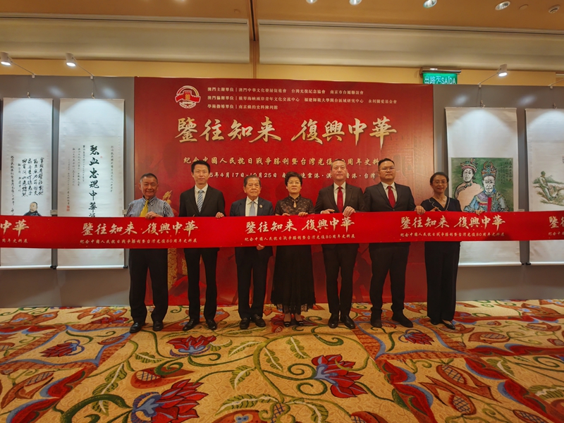 8月20日上午,由澳门中华文明开展促进会、我国抗日战争史学会、横琴海峡两岸青年文明交流中心、全球中华文明产业开展协会联合主办,台湾克复留念协会、南京市台属联谊会、福建师范大学闽台区域研究中心、华夏艺术画院、永利关爱基金会一起协办的“留念抗日战争成功暨台湾克复80周年图片、书画、史料展”开幕典礼于澳门永利会展中心隆重开幕。